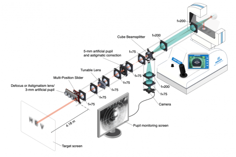 Notre équipe mène des recherches en optique physiologique, en se concentrant sur la performance visuelle de l’œil humain. Nous développons une méthode de simulation de la qualité de l’image rétinienne. Nos travaux portent également sur les mécanismes de l’accommodation et leur impact sur la vision, notamment la fatigue visuelle.
