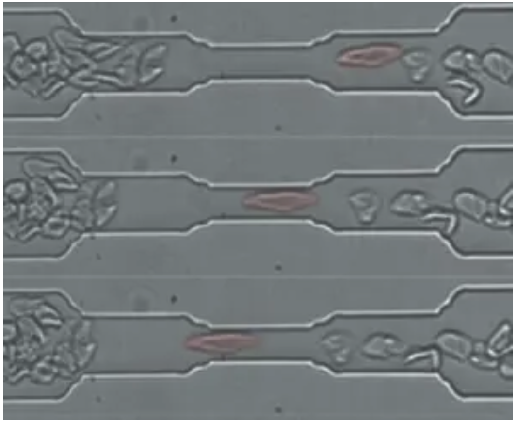 Nous développons des dispositifs pour la caractérisation mécanique et électrique de la rigidité des globules rouges. Des maladies génétiques comme la drépanocytose ou la sphérocytose, ou des maladies infectieuses comme le paludisme, affectent la rigidité des globules rouges. Les dispositifs microfluidiques, équipés d'électrodes de détection, sont capables de caractériser et de discriminer les différents niveaux de la maladie.